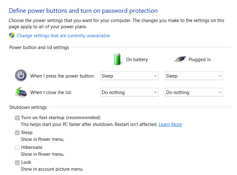 - Click Change settings that are currently unavailable